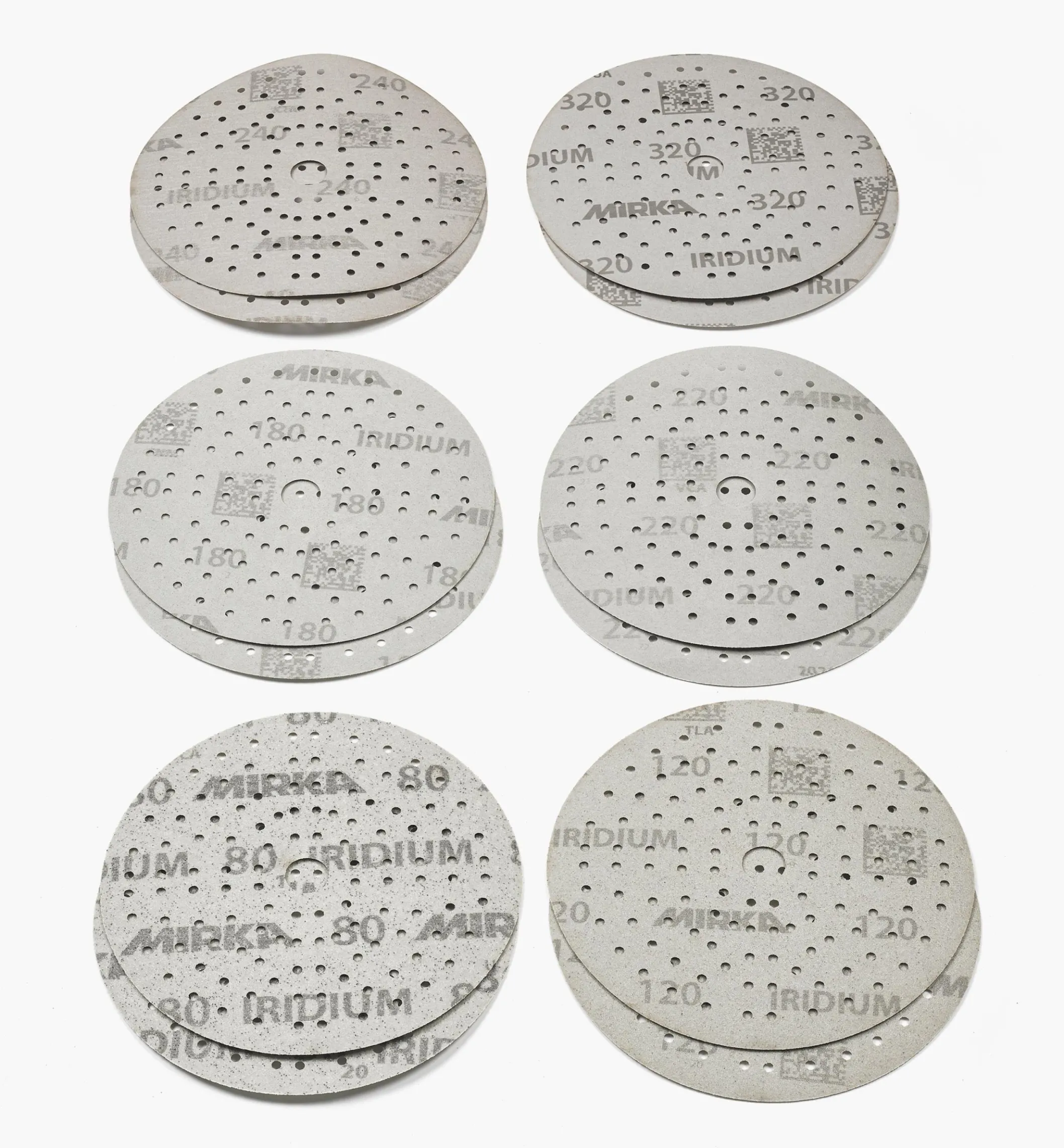 12-Pc. Sample Pack Of Mirka 6″ 121-Hole Iridium Grip Discs